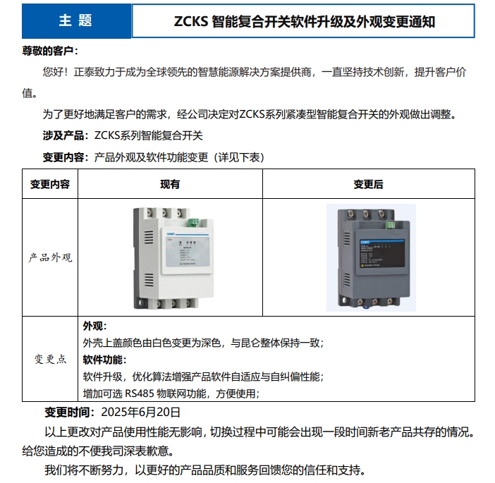 ZCKS 智能復(fù)合開(kāi)關(guān)軟件升級(jí)及外觀變更通知