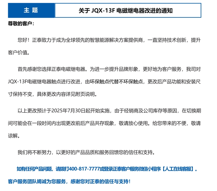 關(guān)于 JQX-13F 電磁繼電器改進的通知